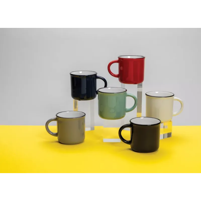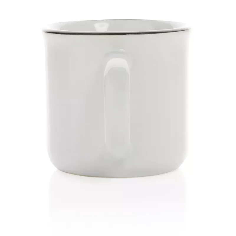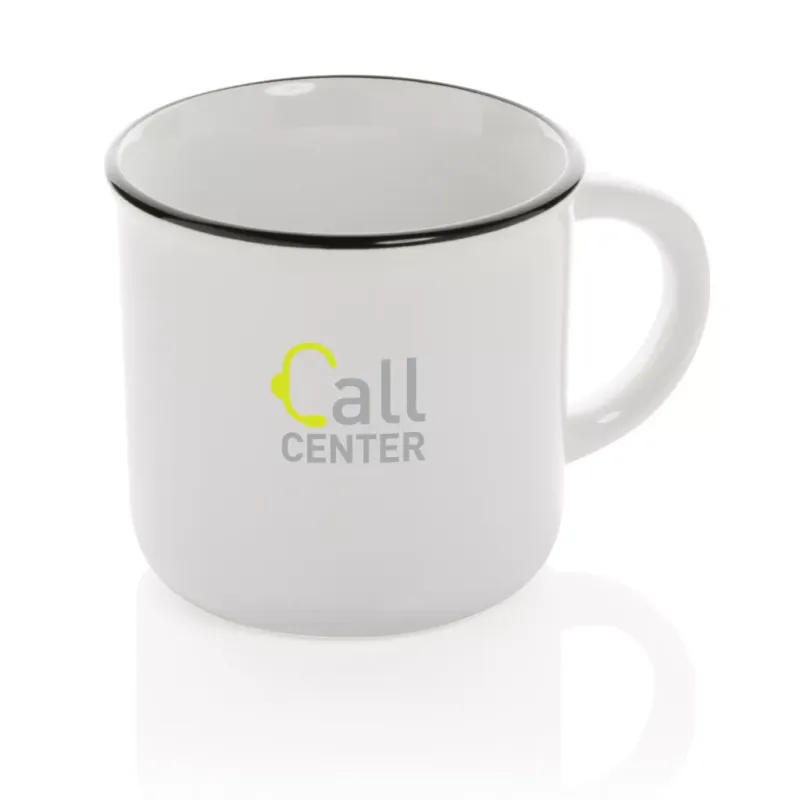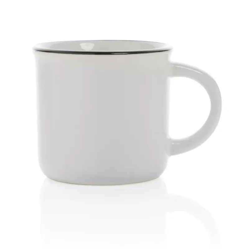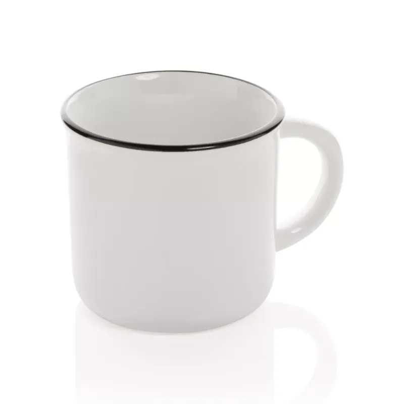 Dieser Becher, aus Keramik hergestellt, steht für Haltbarkeit und dauerhafte Verwendung. Der Becher hat einen Vintage-Look und einen gebogenen Henkel für einen angenehmen Halt. Spülmaschinenfest gemäß EN12875-1 (mindestens 125 Waschzyklen) für alle Dekorationsmethoden. In Geschenkbox verpackt. Kapazität 280ml.