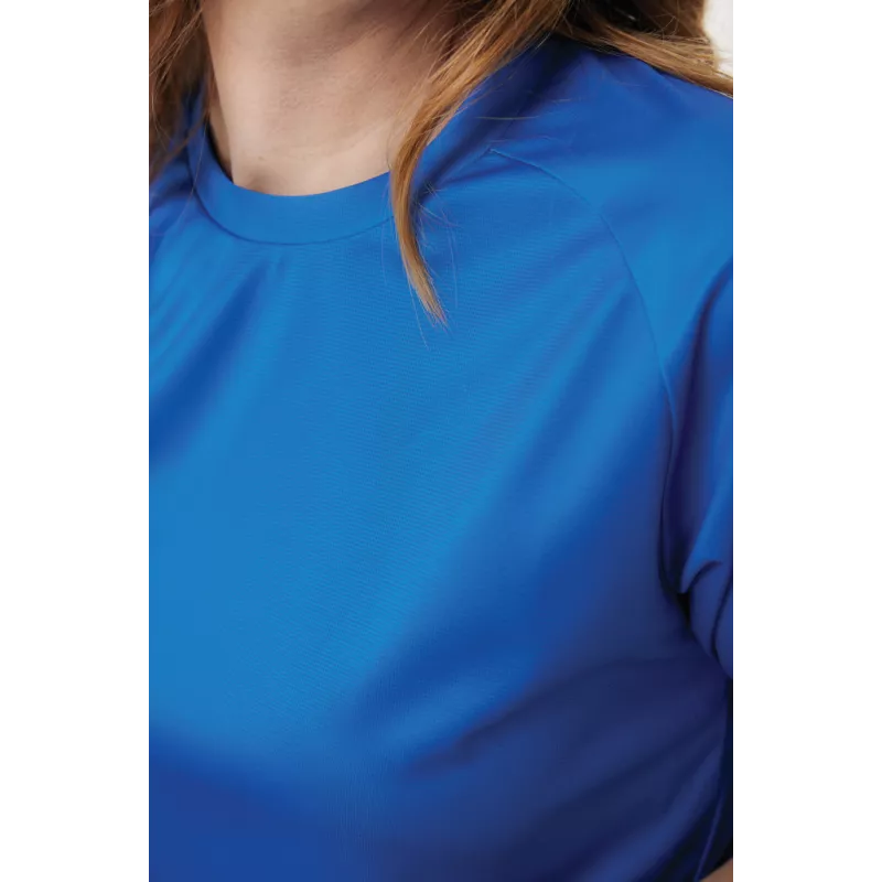 Unisex Medium-Fit Sport-T-Shirt aus 100% recyceltem Polyester (150gr/m²). Dieses Active-Wear-T-Shirt ist aus hochwertigem Mini-Ribstop-Gewebe mit schnelltrocknender Technologie gefertigt und eignet sich daher für zahlreiche Sportarten. Das T-Shirt hat Raglanärmel und einen Rundhalsausschnitt aus Eigengewebe. Die Verwendung von tatsächlich recycelten Stoffen und die Umweltverträglichkeit werden durch die Verwendung der disruptiven AWARE™- und Blockchain-Technologie garantiert. Durch Scannen des QR-Codes erhalten Sie Zugang zu einem speziellen digitalen Produktpass des Produkts. 2% des Erlöses jedes verkauften Produkts werden an Water.org gespendet.