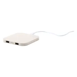 Wireless charger (5W) in ecological wheat straw plastic with 2 USB charger ports. Max output 2100 mA. Including USB charger cable.