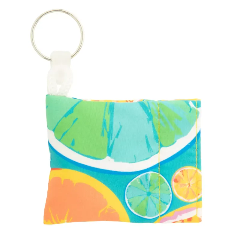 Custom made, microfibre (180 g/m²) cleaning cloth for glasses in polyester pouch with velcro closure and key ring. With all over sublimation printed graphics. MOQ: 100 pcs.