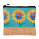 Custom made, zipped cosmetic bag in polyester and natural cork. With all-over sublimation printed graphics. MOQ: 50 pcs.