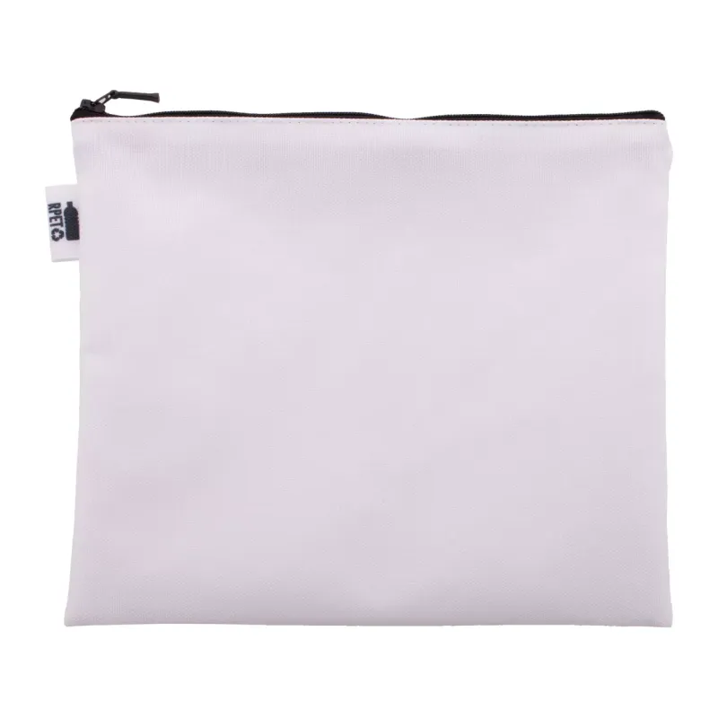Custom made, zipped cosmetic bag in 600D RPET polyester. With all-over sublimation printed graphics. MOQ: 50 pcs.