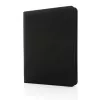 This A4 Impact AWARE™ deluxe 300D tech portfolio with zipper adds a little bit of extra sophistication to your work. Keep your important documents, cards and notes together. Inside the A4 portfolio you can find a lined 64 gm/2 recycled paper notepad containing 20 pages. Inside there’s 1 phone size pocket, a phone holder, pen loop and 2 business card slots. With AWARE™ tracer that validates the genuine use of recycled materials. Each portfolio saves 4.8 litres of water and has reused 8 0.5L PET bottles. 2% of proceeds of each Impact product sold will be donated to Water.org. PVC free.