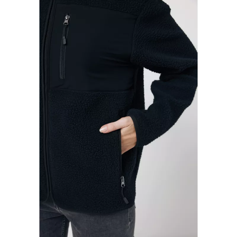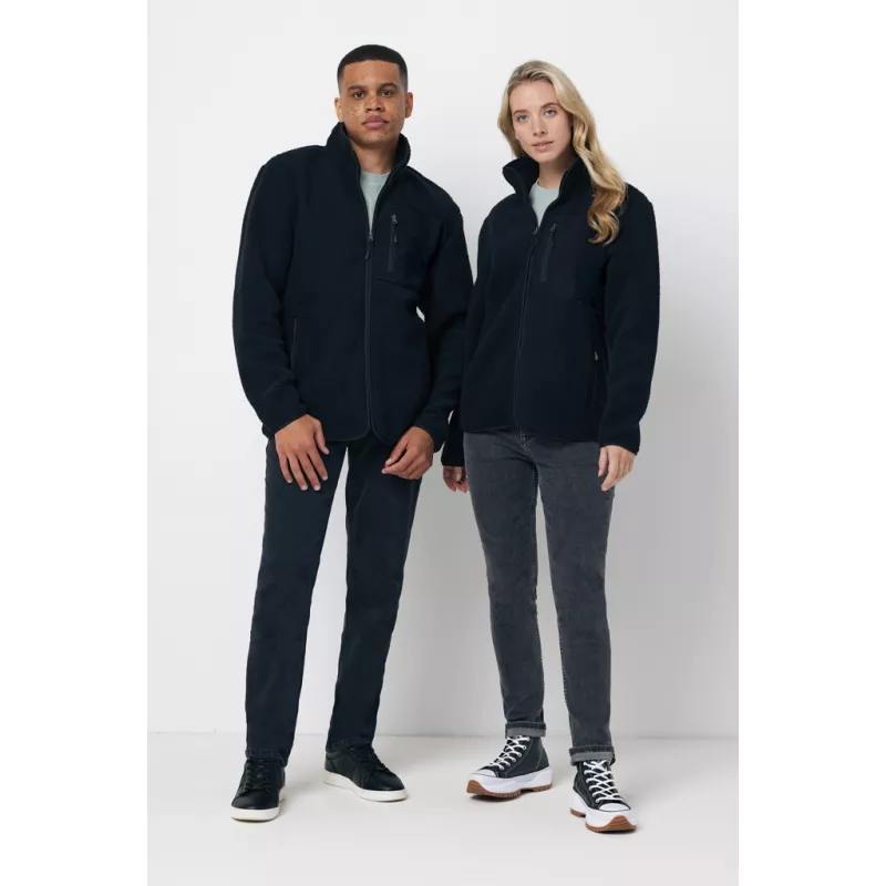 Unisex pile fleece zip through jacket made from 100% post-consumer recycled polyester in 320 G/M². Make a style statement with this cool and stylish “must have” jacket. Refined binding on full jacket and soft jersey look from inside. The jacket has a woven chest pocket with zipper that offers a good personalised decoration area. All zippers have extra zip pullers in matching colour for a refined look. The use of genuine recycled & organic fabric materials and environmental impact claims are guaranteed, by using the AWARE™ disruptive physical tracer and blockchain technology. By scanning the QR code, you will gain access to a dedicated digital passport of the product. 2% of proceeds of each sold product will be donated to Water.org. This product is OEKO-TEX® STANDARD 100 certified.
