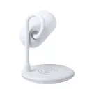 Plastic multifunctional desk lamp with 14 LEDs and 3 light modes. With built-in wireless charger (5W) and bluetooth speaker. Including USB charger cable.