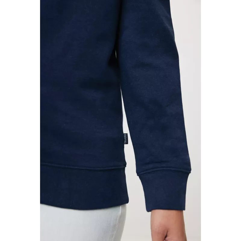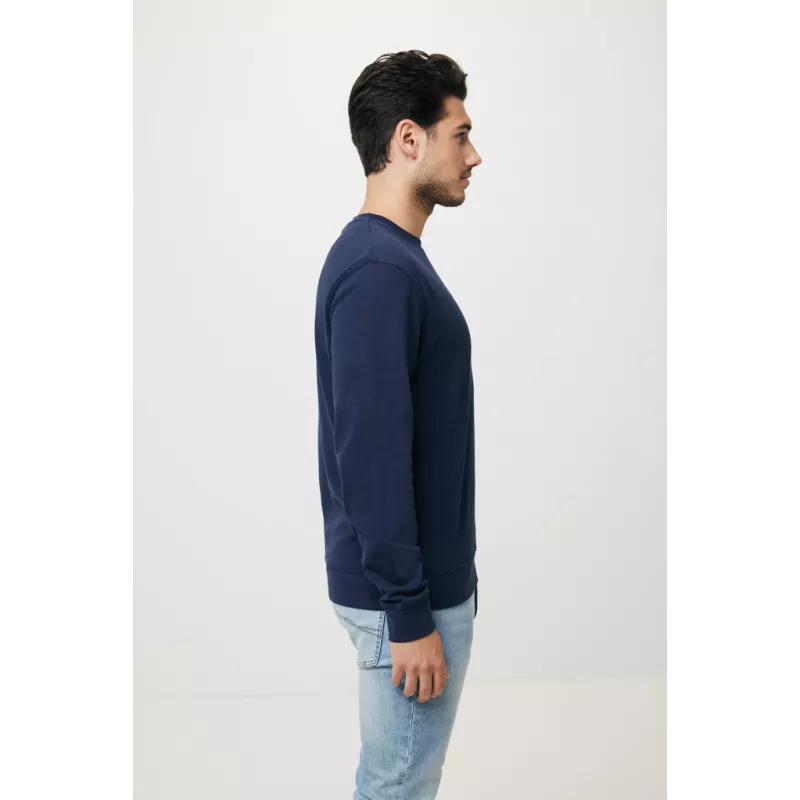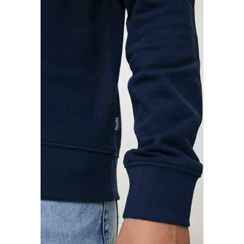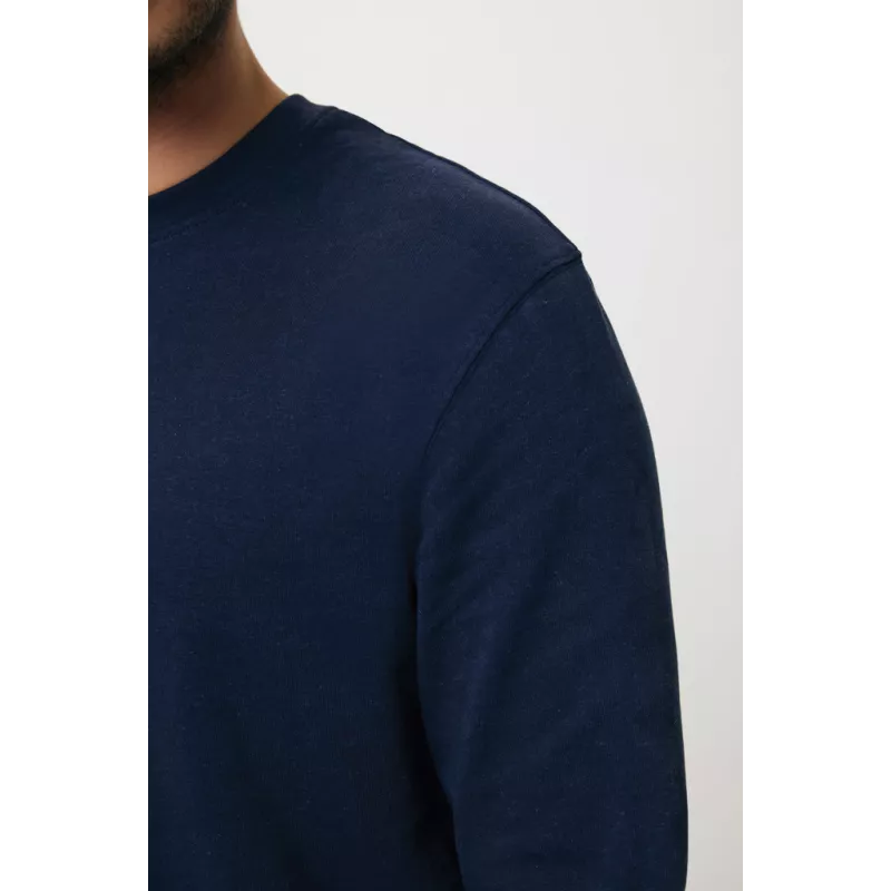 This unisex crew neck in regular fit is a comfortable, simple sweater suited for many occasions. It has a round neckline, long sleeves and 1 x 1 rib at neck collar, bottom hem and cuffs. Clean finishing with herringbone tape on the inside neck and the small iqoniq brand label in the side seam. The composition is 100% cotton, of which 50% is recycled and 50% organic, in 340 G/M². No mix with plastics (such as polyester), so after life is recyclable into new cotton products. The inside is soft-brushed fleece for extra comfort. The use of genuine recycled & organic fabric materials and environmental impact claims are guaranteed, by using the AWARE™ disruptive physical tracer and blockchain technology. Every iqoniq product has a unique QR label. By scanning this QR, you will gain access to a dedicated digital passport of the product. 2% of proceeds of each product sold will be donated to Water.org. OEKO-TEX® STANDARD 100. 2303045 Centexbel.
