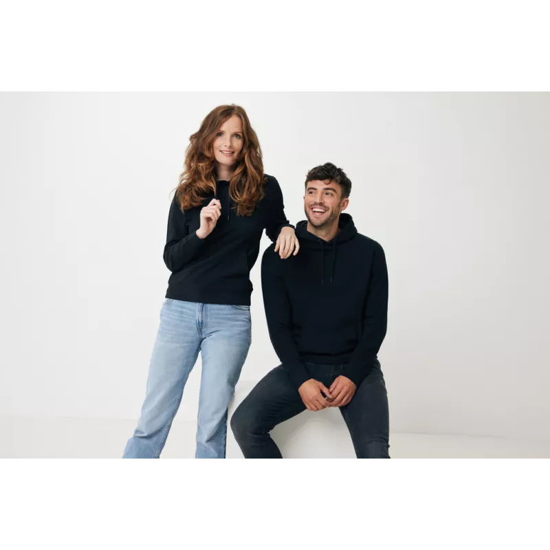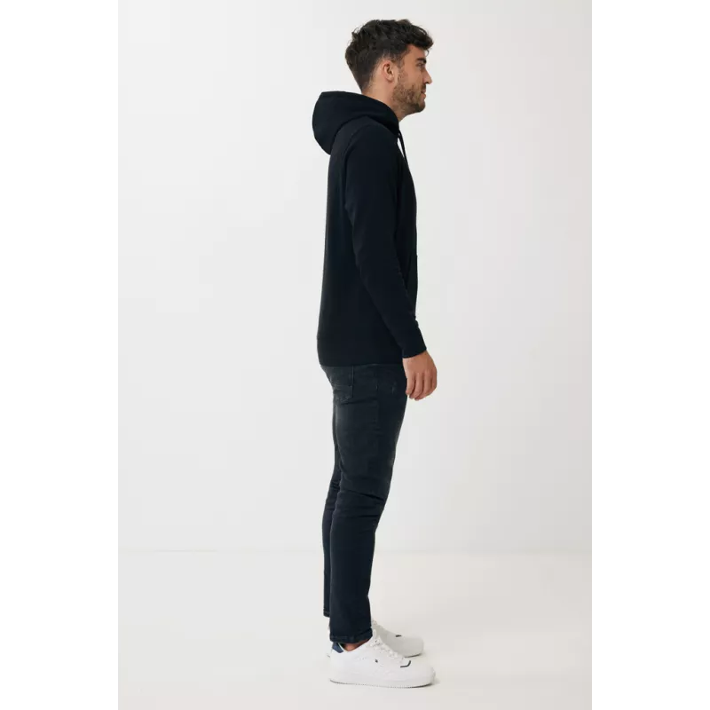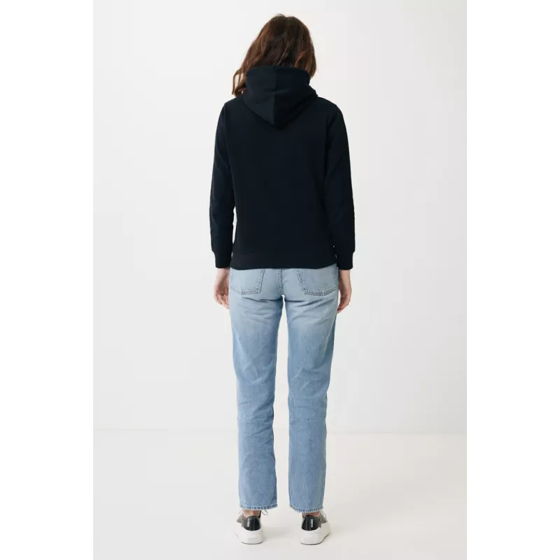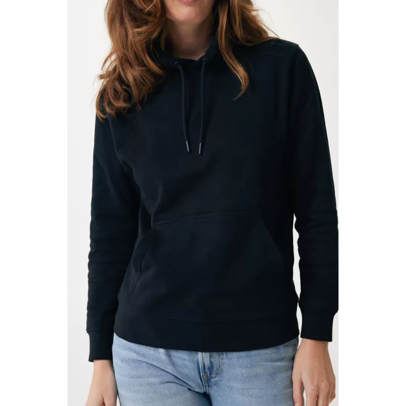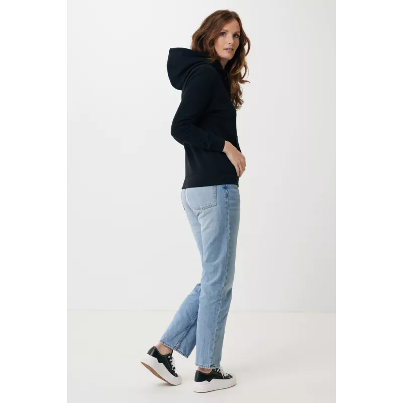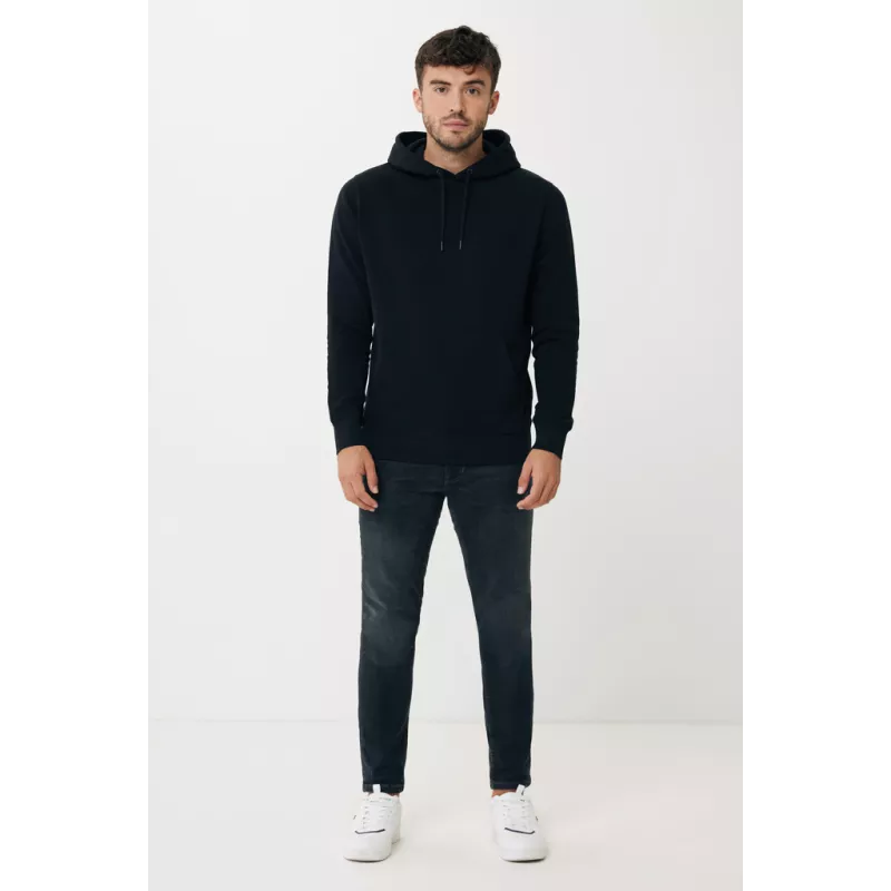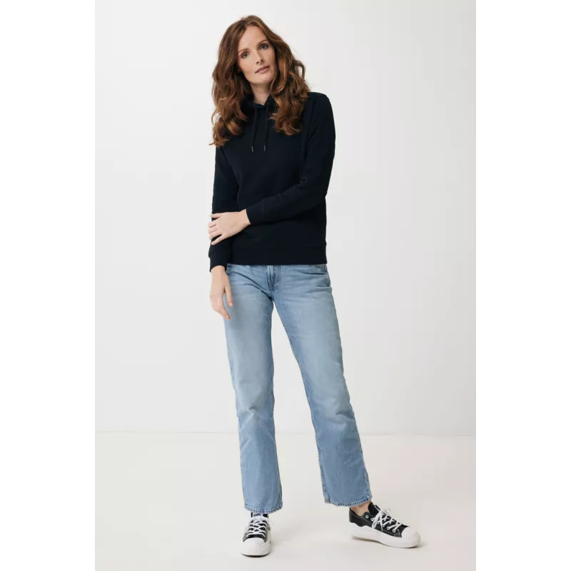 The modern fit sweater has a double-layered hood, long sleeves and 1x1 rib at cuffs and bottom hem. The inside is soft-brushed fleece for extra comfort. The use of genuine recycled & organic fabric materials and environmental impact claims are guaranteed, by using the AWARE™ disruptive physical tracer and blockchain technology. By scanning the QR code, you will gain access to a dedicated digital passport of the product. 2% of proceeds of each sold product will be donated to Water.org. This product is OEKO-TEX® STANDARD 100 2303045 Centexbel certified. Due to the nature of recycled yarns, impurities and colour variations may appear.