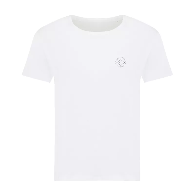 Women’s modern fit t-shirt made from 100% cotton, of which 70% organic and 30% recycled, 160 G/M². The t-shirt has a nice round neckline from self-fabric. The use of genuine recycled & organic fabric materials and environmental impact claims are guaranteed, by using the AWARE™ disruptive physical tracer and blockchain technology. By scanning the QR code, you will gain access to a dedicated digital passport of the product. 2% of proceeds of each sold product will be donated to Water.org. This product is OEKO-TEX® STANDARD 100 2303045 Centexbel certified. Due to the nature of recycled yarns, impurities and colour variations may appear.
