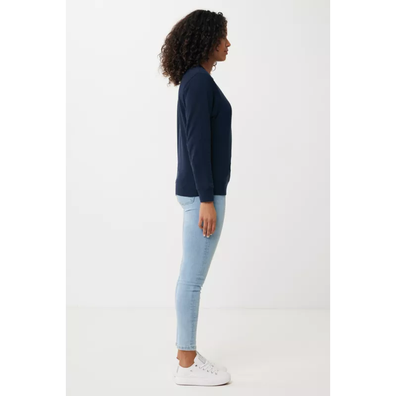 Cuello redondo unisex de corte medio confeccionado en 100% algodón, del cual 70% orgánico y 30% reciclado, 280 G/M². Tiene cuello redondo, manga larga y canalé 1x1 en cuello, puños y dobladillo inferior. El interior es de suave tejido polar cepillado para mayor comodidad. El uso de materiales de tela orgánicos y reciclados genuinos y las declaraciones de impacto ambiental están garantizadas mediante el uso del trazador físico disruptivo AWARE™ y la tecnología blockchain. Al escanear el código QR, obtendrás acceso a un pasaporte digital exclusivo del producto. El 2% de los ingresos de cada producto vendido se donará a Water.org. Este producto cuenta con la certificación OEKO-TEX® STANDARD 100 2303045 Centexbel. Debido a la naturaleza de los hilos reciclados, pueden aparecer impurezas y variaciones de color.