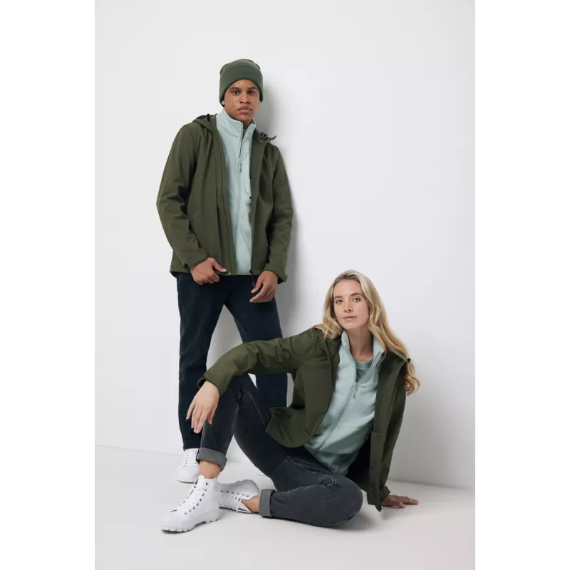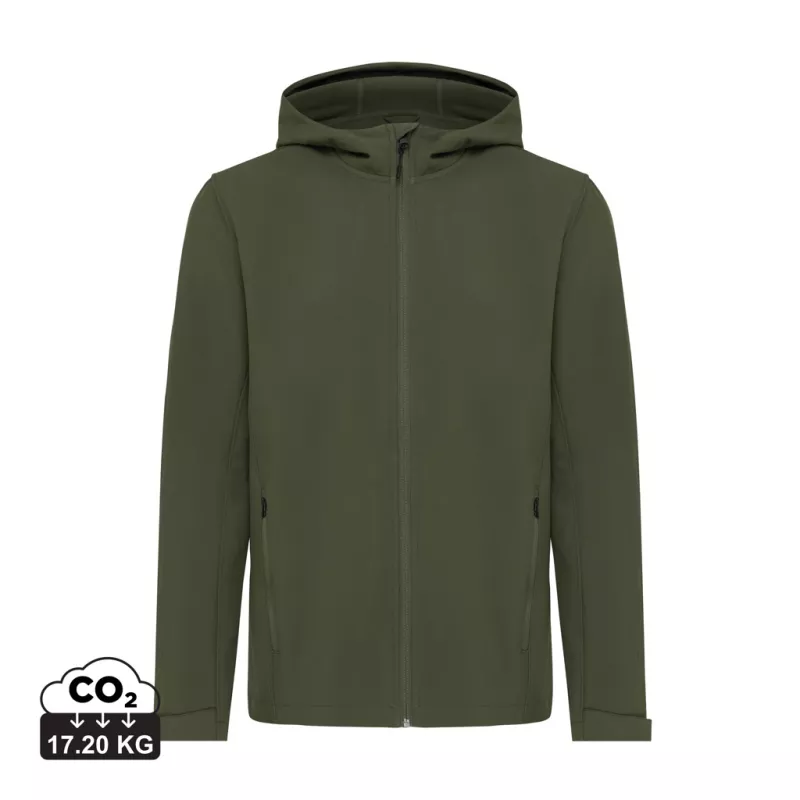 Chaqueta soft shell para hombre confeccionada en poliéster reciclado con tejido de 3 capas de 300 G/M², utilizando membrana de TPU reciclado y suave micropolar en el interior. Cremallera invertida en la parte delantera y bolsillos laterales con cremallera. Capucha ajustable con topes interiores para una mejor protección. Puños de las mangas ajustables con cierre de velcro. Tirador de cremallera adicional. La chaqueta es repelente al agua con BIONIC-FINISH® ECO (el tejido es con membrana de TPU reciclada hasta 5000 mm impermeable). Cortavientos y transpirable hasta 3000g/m2/24h. El uso de materiales reciclados genuinos y las declaraciones de impacto ambiental están garantizadas mediante el uso del trazador físico disruptivo AWARE™ y la tecnología blockchain. Al escanear el código QR, obtendrá acceso a un pasaporte digital exclusivo. El 2% de los ingresos de cada producto vendido se donará a Water.org. Este producto tiene la certificación OEKO-TEX® STANDARD 100. También en talla mujer.