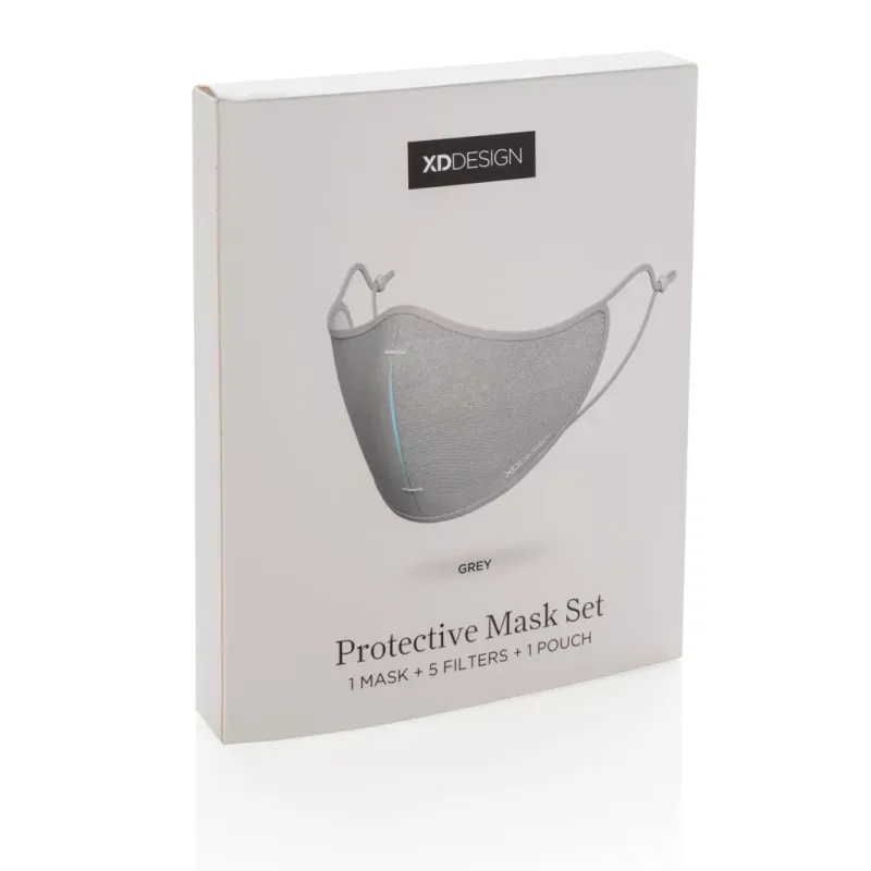 Esta cómoda mascarilla XD DESIGN está hecha para cada rostro. Diseño ligero de tres capas; La capa frontal de poliéster es tratada con ViralOff®, una tecnología que elimina el 99% de los virus en 2 horas. La capa intermedia contiene un exclusivo filtro de nanofibras Hyproof® probado en laboratorio. Este filtro tiene una eficiencia de filtrado del 95%. La capa interna está hecha de poliéster. Con estructura de barbilla tridimensional y puente nasal para facilitar la respiración. Este conjunto incluye: 1 mascarilla reutilizable y lavable, 5 filtros reutilizables, 1 bolsa de almacenamiento. Este dispositivo no es un dispositivo médico en el sentido del Reglamento UE/2017/745 (máscaras quirúrgicas) ni es un equipo de protección personal en el sentido del Reglamento UE/2016/425 (máscaras de filtro tipo FFP2). Diseño registrado®