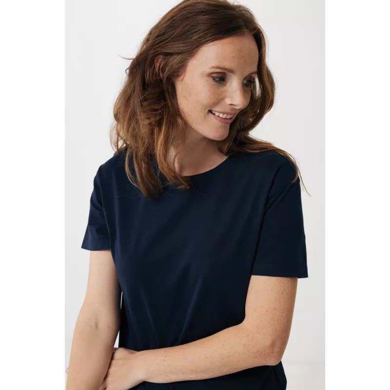 Camiseta de mujer de corte medio confeccionada 100% algodón, 70% orgánico y 30% reciclado, 160 G/M². La camiseta tiene un bonito escote redondo del mismo tejido. El uso de materiales de tela orgánicos y reciclados genuinos y las declaraciones de impacto ambiental están garantizadas mediante el uso del trazador físico disruptivo AWARE™ y la tecnología blockchain. Al escanear el código QR, obtendrás acceso a un pasaporte digital exclusivo del producto. El 2% de los ingresos de cada producto vendido se donará a Water.org. Este producto cuenta con la certificación OEKO-TEX® STANDARD 100 2303045 Centexbel. Debido a la naturaleza de los hilos reciclados, pueden aparecer impurezas y variaciones de color.