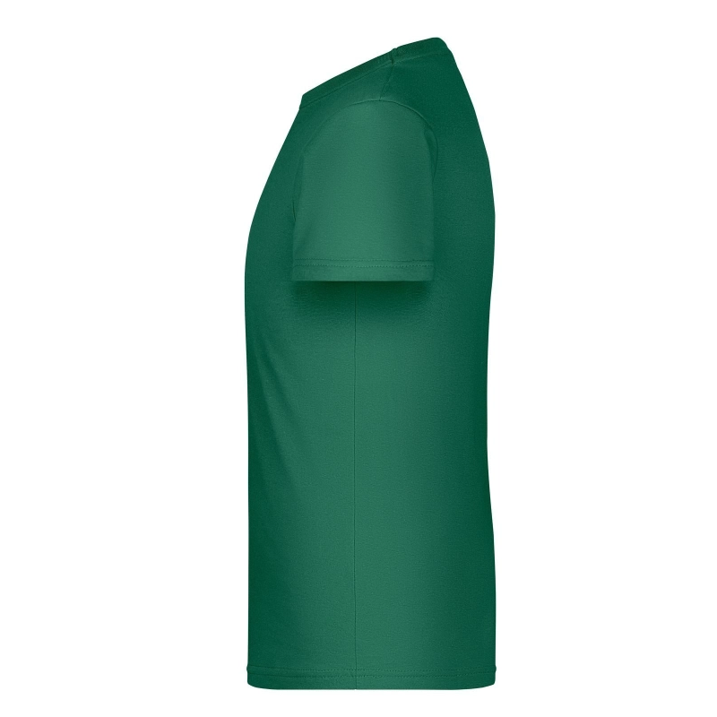 100% algodón. single jersey. Camiseta de cuello redondo para hombre con nelástico en el cuello de elastano, etiqueta removible.