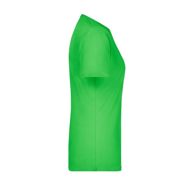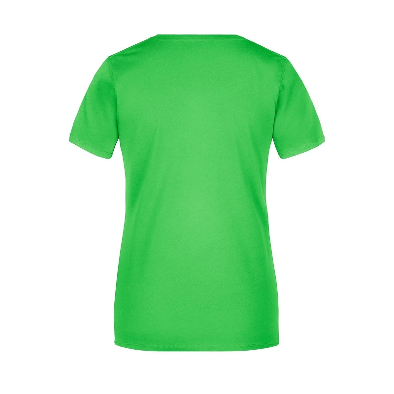 100% algodón. Camiseta mujer mangas cortas, tejido exterior: (150 g/m²): single jersey, cuello redondo, doble costuras nel cuello, en las mangas y en las espaldas.