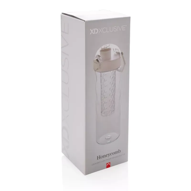 Bouteille à infusion 700ml en Tritan avec design en nid d'abeille. Aromatisez et vitaminez votre eau en ajoutant des fruits frais dans le compartiment à infusion. Bouchon avec verrouillage spécialement conçu pour éviter que la bouteille s'ouvre par accident. Poignée de transport incluse. Modèle déposé®