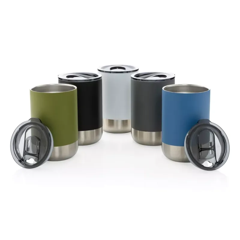 Mug 360ml double paroi fabriqué en acier inoxydable recyclé RCS (Recycled Claim Standard). Garde les boissons chaudes pendant 3 heures ou froides pendant 6 heures. Le couvercle avec fonction d'ouverture coulissante garantit une expérience de consommation anti-dégâts. La certification RCS garantit une chaîne d'approvisionnement entièrement certifiée pour les matériaux recyclés. Contenu recyclé total : 76% sur la base du poids total de l'article. Sans BPA. Emballage kraft certifié FSC® inclus.