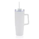 Mug 900ml en plastique à double paroi Tana, fabriqué à partir de 80 % de matériaux recyclés pour une hydratation à faible impact. Que vous travailliez, fassiez de l'exercice ou voyagiez, ce gobelet est votre compagnon idéal. Le couvercle avancé est doté d'un bouchon rotatif à trois positions : une paille anti-éclaboussures, un bec verseur et un couvercle entièrement scellé. La poignée ergonomique avec inserts confort-grip facilite le transport, et la base fine s'adapte à la plupart des porte-gobelets de voiture. Laver à la main uniquement. Contenu recyclé total : 80 % sur la base du poids total de l'article. Sans BPA. Emballage cadeau en kraft certifié FSC® inclus.