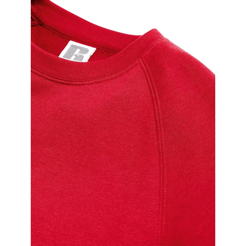 100 % coton peigné ringspun. Tissu extérieur 100% coton (tissu 3 couches). Sweat avec manches raglan et encolure arrondie, coupe cintrée, orlets et poignets plus amples côtelés 1x1, renfort dans le col.