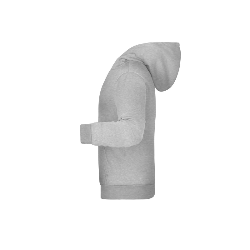 80% coton, 20% polyester. Sweat-shirt avec couche polaire interne, capuche double couche, poche kangourou, bande de propreté, manchettes en élasthanne, étiquette Tear-Off.