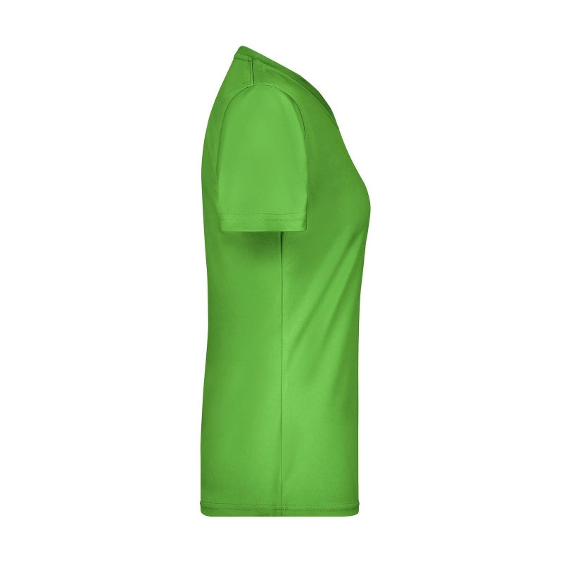 100% polyester. Tee-shirt respirant, tissu extérieur (150 g/m²). Single jersey fin, bande de propreté au col, double aiguille aux épaules, au cou et aux manches, respirant, régule l'humidit é, séchage rapide, coupe cintrée.