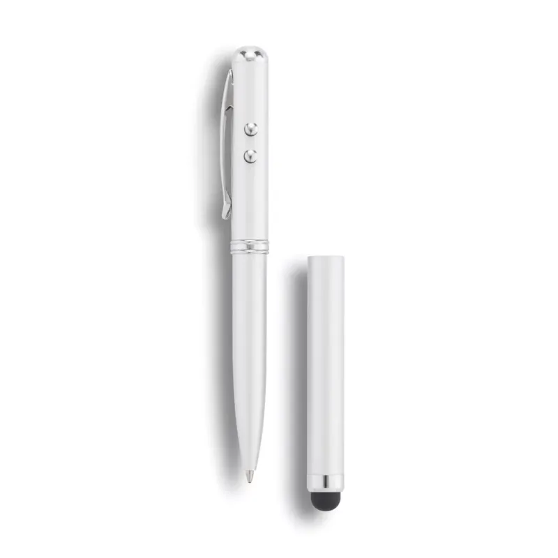 Penna in ottone con funzione touch screen, puntatore laser e torcia. Tutto insieme per rendere facile la presentazione.