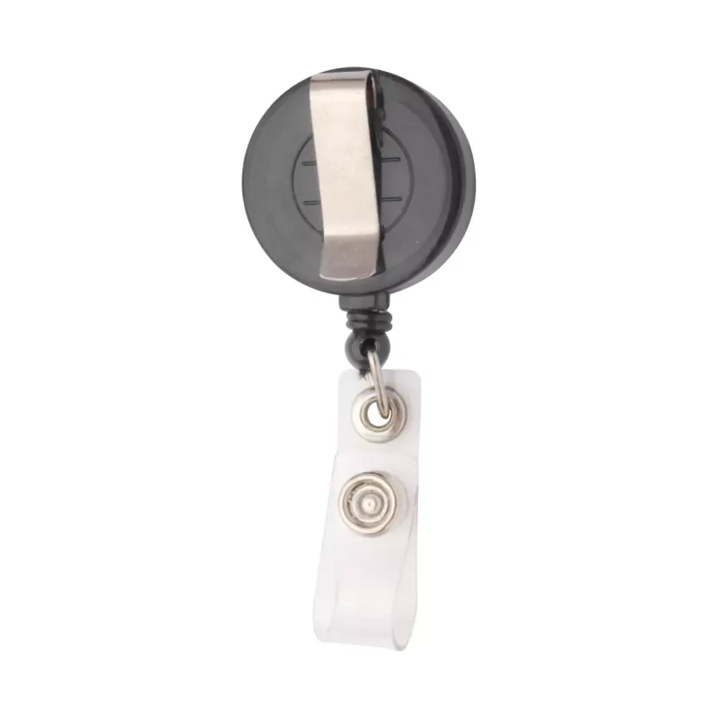 Porta pass telescopico con chiusura a pressione e clip in metallo.