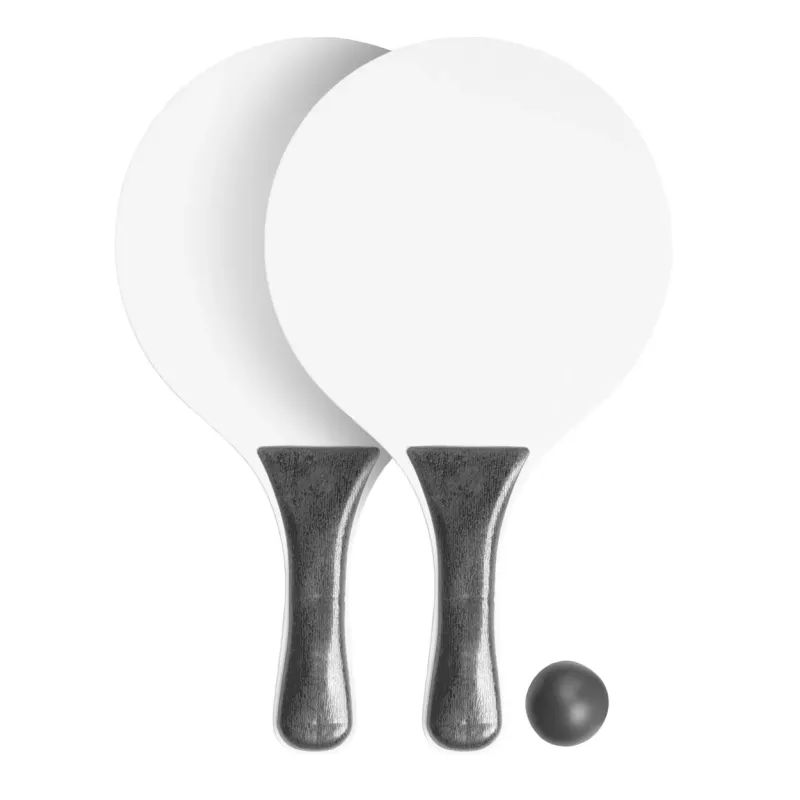 Set 2 racchettoni da spiaggia in legno e plastica con pallina.