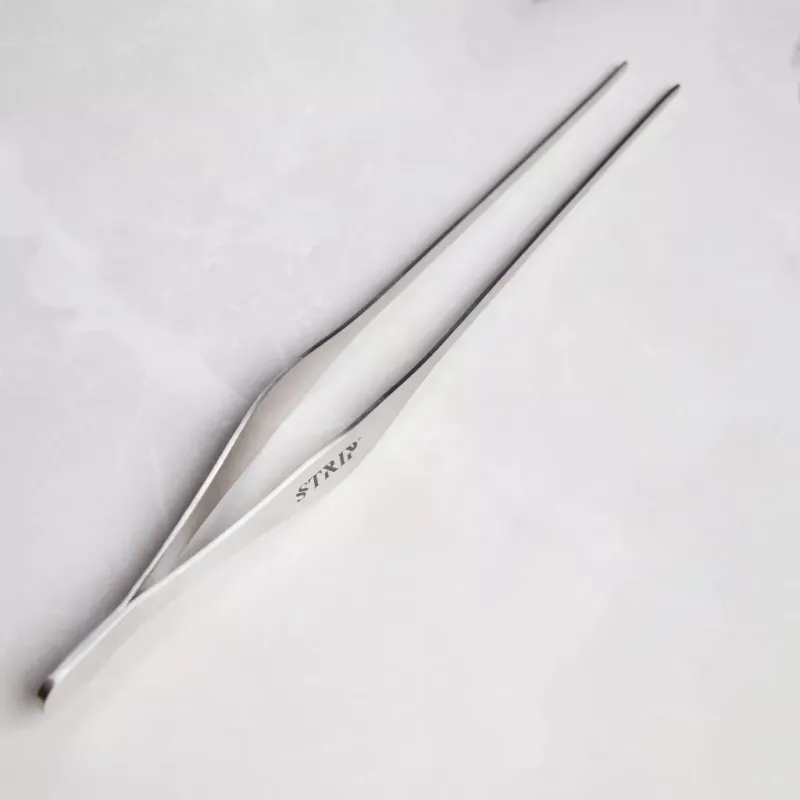 Pinza da cucina in acciaio inossidabile, facile da usare per alimenti di diverse dimensioni. L'interno a coste della pinzetta aumenta l'attrito, migliorando la presa.