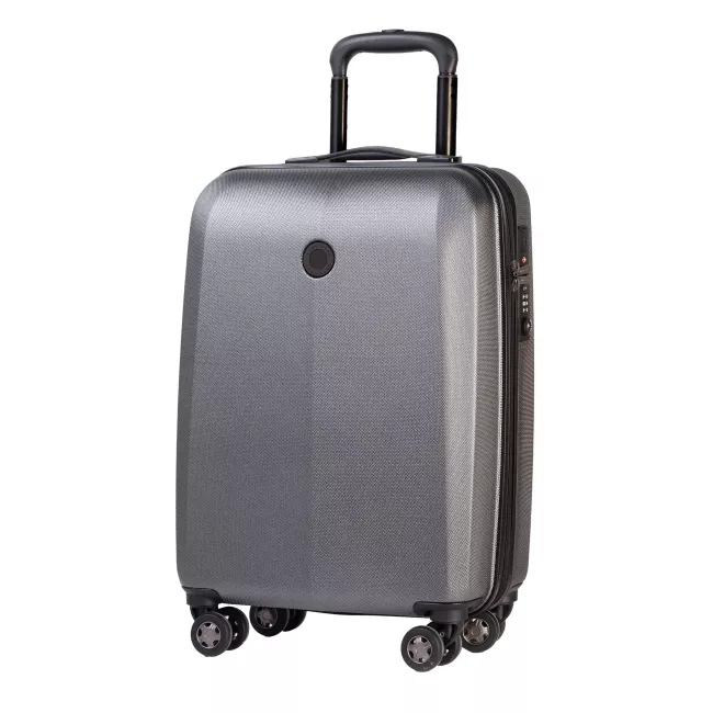 Perfettamente realizzato in materiale granulato grigio scuro e con una morbida targhetta nera, questo trolley da cabina è perfetto per tutti i suoi viaggi.