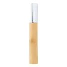 Elegante penna a sfera in metallo con meccanismo a rotazione, fusto in bambù e parti cromate lucide. In astuccio tubolare di bambù e cappuccio cromato. Con refill blu.