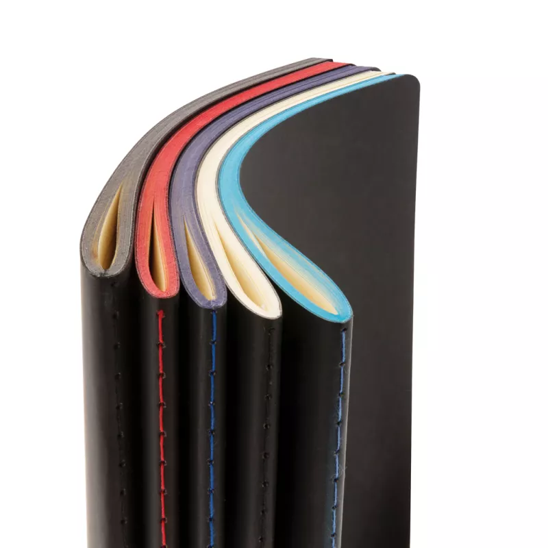 Questo taccuino è leggero e flessibile, il tuo compagno ideale per i tuoi appunti quotidiani. Include 32 pagine a righe color crema da 88 g/m2. Bordo colorato e cuciture sul dorso.