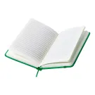 Quaderno con rivestimento in finta pelle, 100 fogli a righe, segnalibro e cinturino in gomma coordinati.