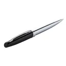 Penna a sfera in metallo con cappuccio nero laccato, corpo cromato lucido e clip. In confezione regalo e refill blu.