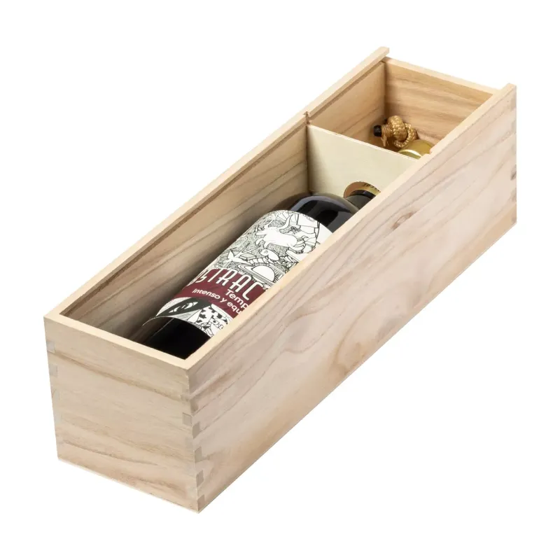 Scatola regalo in legno per 1 bottiglia di vino, con maniglia in cordoncino.