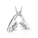 Multiattrezzo con 12 funzioni robusto e resistente. Struttura in alluminio e attrezzi in acciaio inossidabile. Elenco degli attrezzi: pinze a becchi lunghi, pinza, tronchesina, coltello, cacciavite a stella, cacciavite piccolo a taglio, sega, apriscatole, cavatappi, coltellino seghettato, alesatore/punteruolo, lima e cacciavite grande a taglio. In confezione regalo