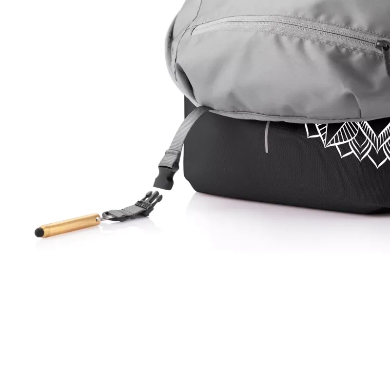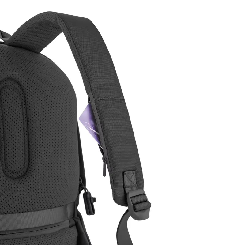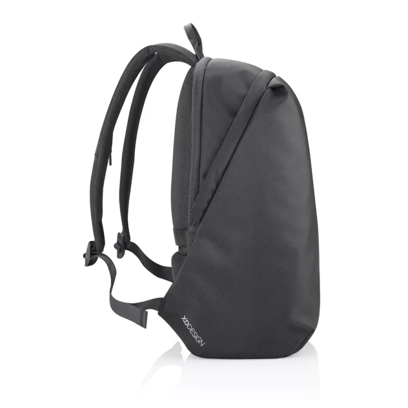 Per l'università, la scuola, il lavoro o il tuo prossimo viaggio, lo zaino Bobby Soft è pronto all'uso! L'iconico zaino Bobby antitaccheggio con tasche nascoste e RFID, senza accesso frontale e cerniere nascoste è ora dotato anche di tiralampo di sicurezza per lo scomparto principale per mantenere le tue cose ancora più al sicuro. Internamente è molto spazioso e versatile. Nello scomparto principale, potrai comodamente riporre tutte le tue cose grazie alla tasca porta PC portatile da 15,6", a piccoli taschini e ad una clip poortachiavi. La parte superiore è espandibile regalando così spazio aggiuntivo per vestiti, libri o per qualsiasi altra tua necessità. Include anche una porta di ricarica USB ed è impermeabile. E' realizzato in materiale R-pet con tracer Aware™.Lo zaino è realizzato dal riciclo di 39 bottiglie di plastica e questo ci permette di risparmaire 23L di acqua per ogni zaino Bobby Soft prodotto. Uno zaino soft per soddisfare qualsiasi necessità. Design registrato®